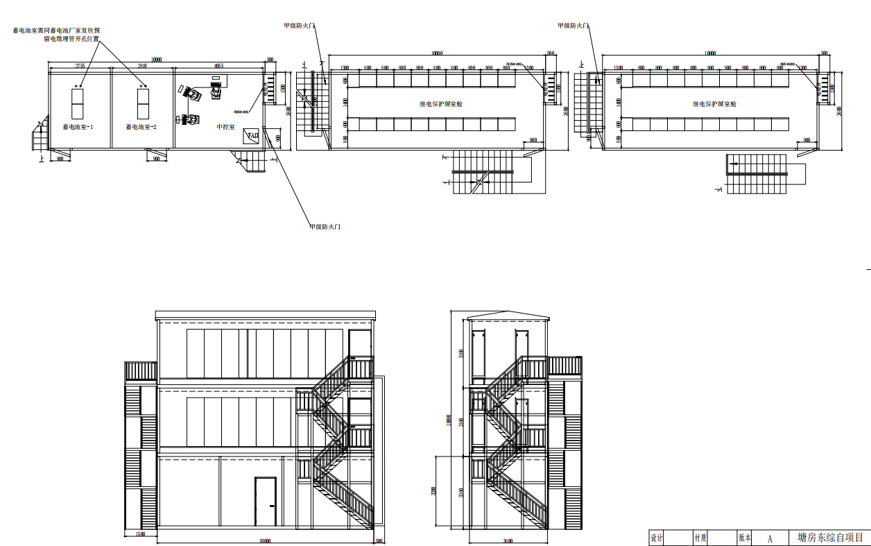项目由中控室及蓄电池室1套尺寸为10m×3.9m×3.2m和二次舱2套尺寸为10m×3.9m×3.2m,,,,爬梯及辅控系统组成